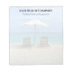 Bloc-notes vierge avec deux lignes de texte personnalisé en haut et transats arrière - plan. Deux chaises font face à l'océan turquoise sous un parapluie à cette image arrière - plan. Utilisez les lignes de texte ou supprimez l'exemple de libellé. Cette conception s'avérerait efficace pour une entreprise de voyage, une entreprise côtière ou des locations de vacances.