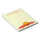 5,5" x 6" bloc - notes jaune pâle personnalisable avec une image d'un citrouille orange sur un lit du rouge et du feuille d'automne d'or. Voyez la collection entière de bloc - notes de thanksgiving dans la section de VACANCES.