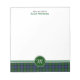 Tampon de note personnalisé avec bordure plaid et monogramme. Il présente le tartan de Clan Murray, daté de 1831. Motif écossais traditionnel en plaid dans les tons bleu et vert avec tons noir et rouge.