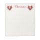 Ce bloc-notes est blanc avec deux coeurs gothiques rouges foncés entourés d'os blancs avec des crânes au centre du coeur. Customisez votre nom avec le modèle.