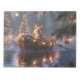 Mettez les voiles dans la magie de la saison des fêtes avec cette illustration magnifiquement détaillée, mettant en vedette un chien fier assis dans un bateau décoré de manière festive, glissant sur un lac de Noël serein. Les lumières scintillantes des pins voisins se reflètent dans l'eau, jetant une lueur chaude et festive qui renforce l'ambiance cosy. Des ornements pendent des côtés du bateau, tandis que des lanternes lumineuses éclairent le chemin, créant une scène qui capture l'essence même de la chaleur et de la joie de Noël. Cette œuvre d'art nostalgique apporte une touche de magie des fêtes à n'importe quel espace, parfaite pour ceux qui chérissent l'esprit de la saison.
