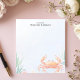 Apportez une touche de charme balnéaire à vos notes grâce à cet adorable bloc-notes personnalisé. Une jolie illustration de crabe rose serpente à travers le fond, accompagnée de subtils accents d'algues. Le design épuré et minimaliste met l'accent sur le charmant crustacé. Ajoutez votre texte personnalisé pour créer un bloc-notes unique et amusant. Idéal pour les amateurs de plage, les listes de choses à faire ou les rappels rapides.