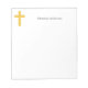 Un bloc-notes simple et élégant avec une croix d'or sur la gauche et du texte personnalisable. Une façon très sobre de prendre des notes si vous êtes un pasteur, une église, une communauté chrétienne, ou juste une famille.