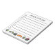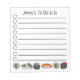 Le design du pavé à notes de style Liste présente une illustration originale d'une rangée de rouleaux de sushis alimentaires japonais classiques et de nigiri saumons. Idéal pour votre gourmet préféré ! Personnalisez simplement vos informations. De nombreux autres blocs-notes illustrés sont également disponibles dans cette boutique. Cette conception est également disponible sur d'autres produits, et les versions de Noël, Pâques et Valentine sont également disponibles à l'achat. Ne vois-tu pas ce que tu cherches ? Vous avez besoin d'aide pour la personnalisation ? Contactez Rebecca pour avoir quelque chose conçu pour vous.