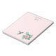 Pretty custom notepad featuring an Anna's hummingbird and a wild rose bouquet on a light pink background.