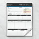 Here's a simple & concise way to document the status of your projects daily, weekly, monthly, or quarterly. This notepad has a minimal design that can be personalized with your name, business, and job title. The colors are also editable within the template editor tool. Overall, our project status report notepad is excellent for project managers as well as team members.