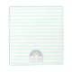 NewParkLane - Bloc-notes personnalisé pour enfants avec un arc-en-ciel mignon, contre un arrière - plan rayé vert menthe, et un modèle de texte pour votre nom ou autre texte personnel. Facile à customiser à Zazzle avec votre propre texte pour un design personnalisé. Tous les styles de texte, couleurs, tailles peuvent être modifiés selon vos besoins. Découvrez cette collection pour les objets correspondants ! Avez-vous des souhaits particuliers en matière de design personnel? N'hésitez pas à me contacter !