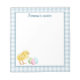 Destei's watercolor illustration of a yellow baby chick together with pastel Easter eggs in green, pink and blue colors. The edges have a blue gingham pattern and the middle is white for easy writing. On the top is a personalizable text area for a custom title. Cute design for Easter and spring.