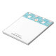A notepad with a cute cat pattern, set on a blue background and decorated with rainbows and paw prints and more.