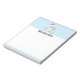 Un bloc-notes avec une licorne mère blanche avec une crinière et une queue colorées fantaisie. Un bébé licorne posé à côté d'elle, avec une sucette verte dans la bouche. Un arc-en-ciel coloré aux nuages moelleux, et quelques étoiles et coeur décorent ce design doux et adorable. Un contour rose et audacieux entourant l'image lui donne une ambiance de doodle à l'enfant. Bordure bleu clair.