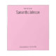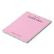Ce bloc-notes de la part de a un texte noir affiché en haut. Il y a un grand texte noir pour le nom du destinataire en haut. Il y a un texte noir plus petit en bas pour les informations de contact telles qu'une adresse e-mail et un numéro de téléphone. Le papier est rose clair.