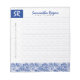 Bloc-note Dentelle florale bleu monogramme et Damas blancs 2