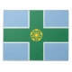 Ce design présente le drapeau historique du comté de Derbyshire, situé dans les Midlands de l'Est de l'Angleterre. Une grande partie du Parc national du district de Peak se trouve dans le comté de Derbyshire, et la chaîne de collines de Pennine qui s'étend au nord du comté. Derbyshire borde West Yorkshire au nord, South Yorkshire au nord-est, Nottinghamshire à l'est, Leicestershire au sud-est, Staffordshire à l'ouest et au sud-ouest, Cheshire également à l'ouest et Greater Manchester au nord-ouest. Kinder Scout, à plus de 600 mètres, est le point culminant du comté. Derby, Chesterfield, Long Eaton, Ilkeston, Swadlincote, Belper, Dronfield, Buxton, Ripley, Staveley, Glossop, Heanor, Bolsover et Eckington sont les principales localités du comté traditionnel de Derbyshire.
