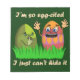 Un joli dessin animé d'oeufs de Pâques avec deux oeufs peints / teints se cachant dans l'herbe verte. L'un est camouflé et prend la chasse très au sérieux. L'autre oeuf aux couleurs vives est trop excité pour se cacher. Il agite ses bras, sourit. (Sur la plupart mais pas tous les produits) le texte avec un jeu de mots dit, "Je suis tellement cité que je ne peux pas le cacher." Ce dessin humoristique et stupide est unique et original et serait mignon à porter pour une chasse aux oeufs de Pâques ou tout le printemps, pour un enfant / bébé ou un jeune adulte de coeur.
