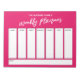 Ce planificateur hebdomadaire polyvalent a été configuré avec des éléments très basiques qui peuvent tous être édités... sauf pour l'en-tête. L'expression "planificateur hebdomadaire" a été rendue dans une police d'écriture décontractée moderne et a été placée, sous forme de graphique, en haut de la page. Utilisez les champs modèle pour ajouter vos détails selon vos besoins. Changez aussi les couleurs ou d'autres polices, si vous voulez!