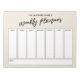 Ce planificateur hebdomadaire polyvalent a été configuré avec des éléments très basiques qui peuvent tous être édités... sauf pour l'en-tête. L'expression "planificateur hebdomadaire" a été rendue dans une police d'écriture décontractée moderne et a été placée, sous forme de graphique, en haut de la page. Utilisez les champs modèle pour ajouter vos détails selon vos besoins. Changez aussi les couleurs ou d'autres polices, si vous voulez!