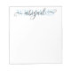 Simple Curly Calligraphy Script First et Last Name Notepad avec le nom modèles en noir et bleu clair. Le cadeau idéal pour la Semaine de l'Appréciation des enseignants, le retour à l'école, la Journée des Professionnels Administratifs, ou en tant que rembourrage personnalisé de Noël.
