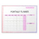 Bloc-notes élégant rose blanc vierge du calendrier mensuel