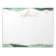 Bloc-notes personnalisé et élégant avec initiales de script de calligraphie ou monogramme et nom en vert et or avec agate vert et accents de bordure de parties scintillant faux or. MODIFICATIONS : Le style, la couleur, la taille et le placement de la police de texte peuvent être modifiés en cliquant sur MODIFIER pour un look personnalisé. ASSISTANCE : Pour obtenir de l'aide sur la modification ou la personnalisation de la conception, le changement de couleur, le redimensionnement, le transfert de la conception vers un autre produit ou si vous souhaitez coordonner des éléments, contactez le concepteur AVANT LA COMMANDE via l'onglet MESSAGE Conversation Zazzle ci-dessous ou envoyez un courriel à makeitaboutyoustore@gmail.com.