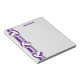 Ce bloc-notes sur le thème du volley-ball comporte 3 balles de volley-ball couleur d'équipe avec des panneaux de volley violet, gris et blanc surplombant des bandes de varsity violettes et grises orientées verticalement sur le bord gauche - le nom de l'entraîneur est personnalisable - par katz_d_zynes