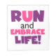 Si vous aimez courir, courir 5Ks, 10Ks, demi-marathons ou marathons, vous adorerez ce texte coloré en violet et rose qui lit Run and Embrace Life ! Cours et Embrassez des T-shirts, des tasses, des sacs, des cartes, des autocollants, des porte - clés, des mousepads, des coques iphone, des magnets et bien plus encore !