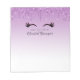 Un bloc-notes au design élégant et tendance. L'arrière - plan est un dégradé violet avec une image de fausse parties scintillant scintillante qui descend du haut. Une paire de cils mignons ceinturés sous l'image de la parties scintillant.