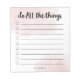 Cette liste de choses à faire simple et moderne présente une typographie manuscrite branchée qui dit "faites tout". Une jolie liste de vérification en noir et blanc que vous adorerez montrer en regardant chaque tâche de votre liste! Des éclaboussures d'aquarelle rose vif élégantes ornent également le bloc-notes.