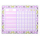 Bloc-notes pour la Fête des Mères personnalisé violet et objectifs de la famille verte. Un bloc-notes de liste à cocher pour vous permettre de suivre toutes les tâches que vous souhaitez accomplir. Dans de jolis tons violets, verts et gris. Écrivez dans votre liste de choses à faire ou à faire. Avec des espaces dans un cadre de grille pour vérifier ce que vous avez fait le jour de la semaine. Cochez ou cochez les tâches à mesure que vous les terminez, de sorte que si vous avez oublié ce que vous avez fait, vous pouvez regarder les cases à cocher pour vous rappeler ce que vous avez fait le jour où vous l’avez fait. Avec espace pour quatorze tâches ou éléments à écrire. Idéal pour suivre les Résolutions du Nouvel An ou comme carte de corvée, ou les devoirs des enfants. Modifiez le titre en haut à l'aide du bouton Personnaliser. Le bord du bloc-notes est doté d'une belle bordure motif géométrique, féminine. Il y a aussi un espace pour écrire à la date de début de la semaine. Les jours de la semaine commencent lundi. Offrez-vous un cadeau du jour de l’an à votre mère, à votre mère, à votre mère, à votre femme, à votre petite amie ou à votre grand-mère. Un planificateur visuel simple et utile pour les filles et les femmes atteintes du TDAH.