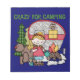 Les filles qui aiment camper aimeront cette conception mignonne d'extérieur comportant une fille d'une chevelure blonde sur des vacances de camping, un ours, le hibou, le campeur, les arbres, et le feu de camp !