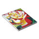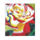 avec une conception d'art original à partir d'une peinture aquarelle de Sacha Grossel de fleur de rose hybride rouge et jaune sur fond vert. Cette conception d'art lumineuse et contemporaine est un grand design floral macro à focus rapproché d'un motif botanique dans un style lumineux, vif et coloré pour les amateurs de fleurs et de roses partout.