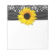 Elégante et belle tournesol jaune, noir et blanc vintage damassé floral et bloc-notes ruban.