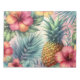 "Tropical Bloom" Un motif tropical vivant et coloré, aux ananas mûrs niché au milieu de luxuriants feuilles de palmiers turquoises et aux fleurs d'hibiscus vibrantes, dans les tons rouge, rose et orange. Ce design saisit l'essence d'un paradis tropical, mêlant une flore exotique à une ambiance fraîche et estivale.