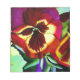 avec une œuvre d'art originale de la peinture aquarelle de Sacha Grossel de pensées violettes, indigo, rouge cramoisi et jaunes sur un feuillage vert. Cette conception inspirée de la botanique florale, colorée et lumineuse, intègre différentes couleurs pour donner une sensation vibrante à cette fleur communément trouvée par temps frais.