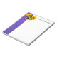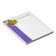 Bloc-notes blanc de 5,5 po x 6 po avec une image de trois tournesols jaune vif et d'une station de mer bleue et une large bordure violette. Texte facultatif. Cette variété de statice produit de grandes grappes de fleurs bleues profondes sur une longue saison, parfait pour l'utilisation dans les arrangements de fleurs séchées et fraîches. Le tournesol (Helianthus annuus) est un plante annuel originaire des Amériques. Il possède une grande inflorescence (tête fleurie), et son nom est dérivé de la forme et de l'image de la fleur, qui est souvent utilisé pour représenter le soleil. Voir carnet correspondant. Consultez la collection complète du Bloc-notes Fleurs et Plantes dans la section OFFICE.
