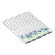 Un joli bloc-notes bordé d'une rangée de fleurs d'aquarelle peintes dans les tons gris, mauve et violet avec des tiges vert printemps et des feuilles. Bloc-notes floral gai pour listes, rappels ou un cadeau mignon!