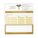 Design professionnel 3d élégant et classe à des fins médicales : or précieux Caduceus symbole avec ailes noires. Ce bloc-notes de rendez-vous offre beaucoup d'espace pour tous les détails importants : nom, adresse, numéro de téléphone, courriel et site web. Il y a aussi un grand champ pour le nom du patient et 4 lignes pour les rendez-vous. Il y a assez d'espace en bas pour des notes supplémentaires importantes et/ou pour votre timbre service. Parfait pour toute entreprise liée aux soins de santé comme un cabinet médical, un cabinet médical, une clinique ou un hôpital. Pour le personnel hospitalier, les médecins, les infirmières; classe, noble et élégant.