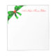 Bloc-notes personnalisable blanc de 5,5 po x 6 po avec l'image d'un ruban satin vert d'angle avec des baies sèches rouges. Voir la collection complète du Bloc-notes de Noël sous la catégorie BUREAU dans la section VACANCES.