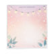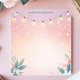 Créez une atmosphère magique et accueillante avec ce bloc-notes personnalisé. De délicates guirlandes lumineuses sont drapées sur le dessus, avec des accents floraux et de feuillage subtils le long du bas, créant une bordure charmante. Le fond doux et pastel accentue l'effet chaud et scintillant. Ajoutez votre propre texte pour personnaliser ce bloc-notes. Parfait pour les notes du soir, les rappels ou les messages sincères.