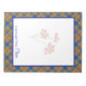Une bordure en tessan clair entoure un trio pâle de fleurs orange sur un espace blanc. Remplacez le texte actuel en bas, "un message de Claire" par votre propre texte pour personnaliser votre bloc-notes. L'accent de fleur peut être enlevé si vous le souhaitez.