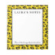 Bloc-notes personnalisé avec impression d'animal sauvage léopard exotique. Blocs-notes personnalisés avec design tendance à motif animal. Modèle de bloc-notes mignon pour la maison ou le bureau. Créez vos propres fournitures scolaires et de bureau uniques. Idée de cadeau élégant et féminin pour femme, sœur, fille, enseignante, maman, entraîneuse, employée de bureau, collègue, collaboratrice, patronne, fille, enfants, etc. Ajoutez votre propre nom, monogramme ou citation inspirante. Exemple : Ne soyez pas occupé, soyez productif ! Typographie de script élégant. Fond jaune ou couleur personnalisée.