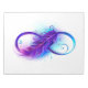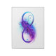 Infinity symbole with a beautiful feather painted in purple and blue bright colors on white background