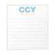 Ces blocs-notes sont lumineux et gais et feront un cadeau parfait ou un ajout à votre bureau. Customisez le bloc-notes avec vos initiales et votre nom à l'aide du formulaire modèle. Utilisez les menus de modification avancée pour choisir différentes couleurs.