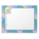 Une flanelle de couleur douce aux tons vert, bleu, rose et jaune est l'arrière - plan de ce bloc-notes personnalisé. Dans le coin inférieur gauche, une marguerite blanche accentue votre message, "un message de Brianna" que vous devriez remplacer par votre propre phrase et nom.