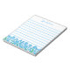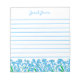 Élégant bloc-notes avec peu de bleu oubliez-moi pas les fleurs au bas de la page, personnalisée avec votre nom. Joli cadeau pour les amateurs de jardin et de nature. Main dessinée par l'artiste Rose Mae Jensen. Contactez l'artiste via Zazzle Conversation ou foolsfield@gmail.com si vous souhaitez modifier ce design ou sur un autre produit.