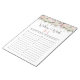 Ce design est un jeu amusant pour une fête de mariage intitulée "Mots de mariage de A à Z". Chaque invité prendra une feuille et écrira autant de mots liés au mariage que possible à côté de la lettre correspondante de l'alphabet. La personne avec le plus de réponses gagne ! Ce design est disponible sur un bloc-notes de 40 feuilles pour votre commodité. Déchirez une feuille pour chaque participant. Le format 21,59 x 27,94 cm offre un espace suffisant pour que vos invités remplissent leurs réponses.