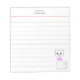 Joli chat blanc et en-tête rose sur bloc-notes ligné blanc. Le texte peut être personnalisé. Convient à tout le monde !