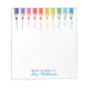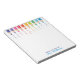Belle ligne de crayons colorés laissant un joli squiggle coloré entrecoupé la page dans de jolies couleurs arc-en-ciel pour décorer le dessus de ce bloc-notes personnalisé. Customisez avec votre nom ou autre texte au bas du bloc-notes en violet et bleu.