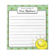 Ajoutez une touche de luminosité et d'amusement souriante au soleil de la salle de classe et aux notes de l'école, aux rappels et autres communications avec cette jolie Polka Vert et Jaune Sunshine Smile Face du Bloc-notes de l'enseignant de ma boutique Zazzle. Taille 5,5 po x 6 po. 40 pages détachables. Lined pour votre commodité d'écriture. Certifié FSC. Vendu par le tampon ou en quantités de deux ou plus. Achetez-les tel quel ou personnalisez facilement le nom et le texte sur le devant pour répondre à vos besoins de cadeaux. Un retour idéal à l'école ou un cadeau à tout moment pour les enseignants d'écoles primaires, maternelles ou plus jeunes et d'autres éducateurs.