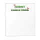 Bloc-notes de 5,5 po x 6 po avec une image du sentiment de vacances "Joyeux Noël" en lettres vertes enneigées et deux chapeaux de Père Noël rouges. Voir la collection complète du Bloc-notes de Noël sous la catégorie BUREAU dans la section VACANCES.