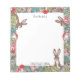 Idéal pour tous ceux qui aiment les lapins lapins et les moufles, ce bloc-notes peut être personnalisé avec un nom pour un look personnalisé! Des lapins Brown de bois se baladent parmi les feuilles, les fougères et les fleurs sur un arrière - plan gris. Il y a aussi des baies et des champignons à déguster pour chaque lapin ! Les verts, les roses et les turquoises mettent en valeur les animaux bronzés. Lit, "Du bureau de" en haut de la zone de note blanche. Oeuvre originale de Tuzi Williams.